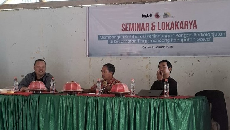 SEMUTHITAMNEWS.COM, GOWA – Wahana Lingkungan Hidup Indonesia (WALHI) Sulawesi Selatan (Sulsel) menggelar Seminar dan Lokakarya bertema “Membangun Kolaborasi Perlindungan Pangan Berkelanjutan di Kecamatan Tinggimoncong Kabupaten Gowa”, Kamis (15/1/2026), bertempat di Kantor Kelurahan Bulutana, Kecamatan Tinggimoncong, Kabupaten Gowa.